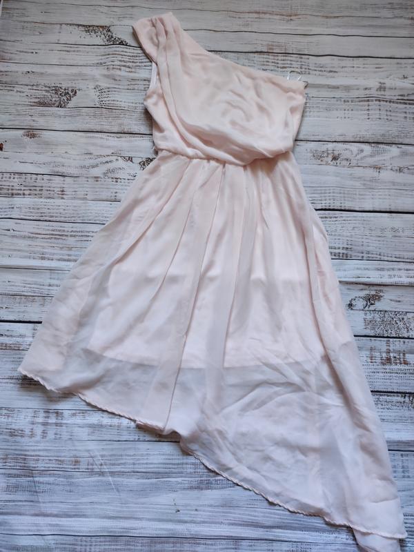 Платье нежно-розового цвета, очень лёгкое и нежное. Юбка с ассиметрия. Состояние идеальное, сбоку одевается на змейка, есть крючки для пояса.