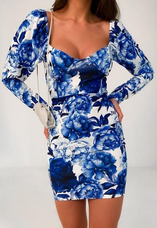 Описание: Шикарное платье с цветочным принтом порцеляна и красивым декольте в виде сердца от популярного британского бренда Missguided. Рукава объемные в плечах. Новое с биркой Размер UK 14 – подойдет на М-L. Ориентироваться по замерам Замеры: Длина 85см от плеча, ПОГ 45см тянется до 55см + чашки, ПОТ 38см тянется до 46см максимум, ПОБ 47см тянется до 57см, рукав 62см