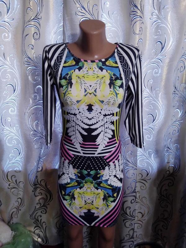 Стильна жіноча сукня River Island. Розмір - UK 8 EUR 34. Заміри: напівобхват грудей 43-46 см, напівобхват талії 34-43 см, напівобхват стегон 42-50 см, довжина рукава 42 см, довжина 86 см. Склад: 95% поліестер, 5% еластан. В дуже доброму стані