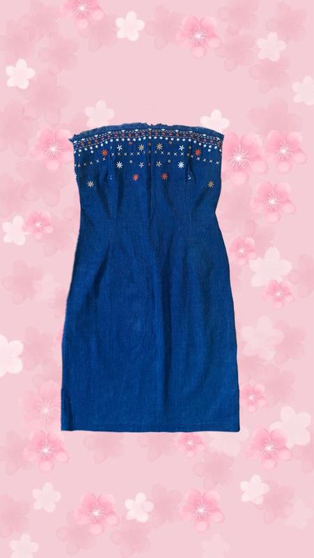 Джинсовe плаття-сарафан на бретелях (знімаються). По фігурі, з вишивкою по верху. Заміри: ПОГ 37-38 см ПОТ 34-35 см ПОБ 42-45 см Довжина 73 см Півобхват довжини шлейок максимально 22 см. Довжина замочка 37 см Довжина розрізу ззаду 19 см Склад 98% котон, 2 еластан.