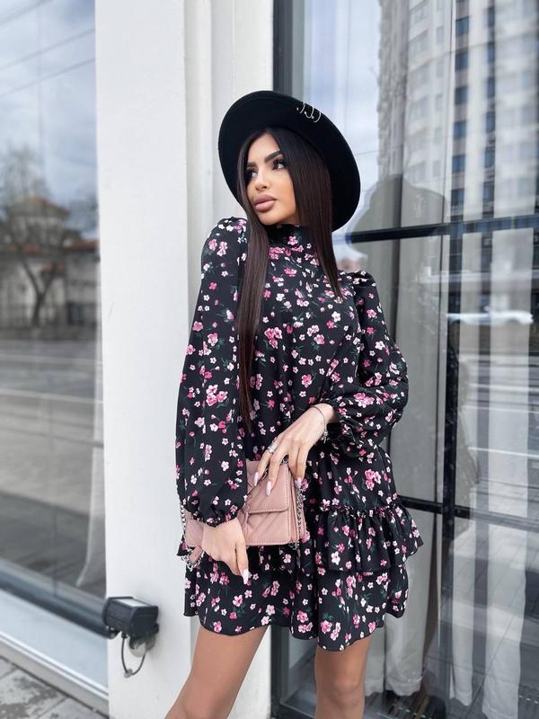 Платье (Фото вживую) Мод. 974ОМ Ткань: Софт принт Отличное качество! Размеры: 42-44, 46-48 Расцветки: Зеленый принт, Черный принт