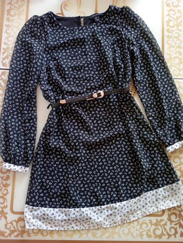 Платье на подкладке с шифоновыми рукавами, плечи 34, ПОГ 44, рукав 59, длина изделия 84 см.