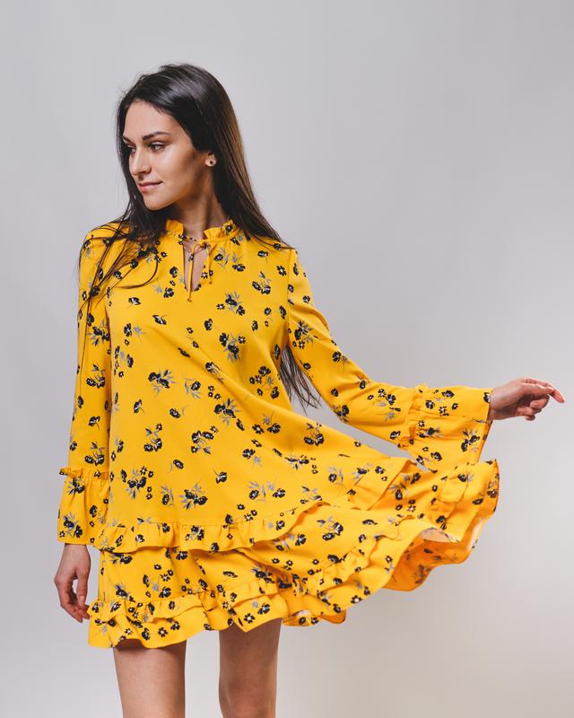 Сукня коротка з рюшами і довгим рукавом, розммір s, тканина штапель