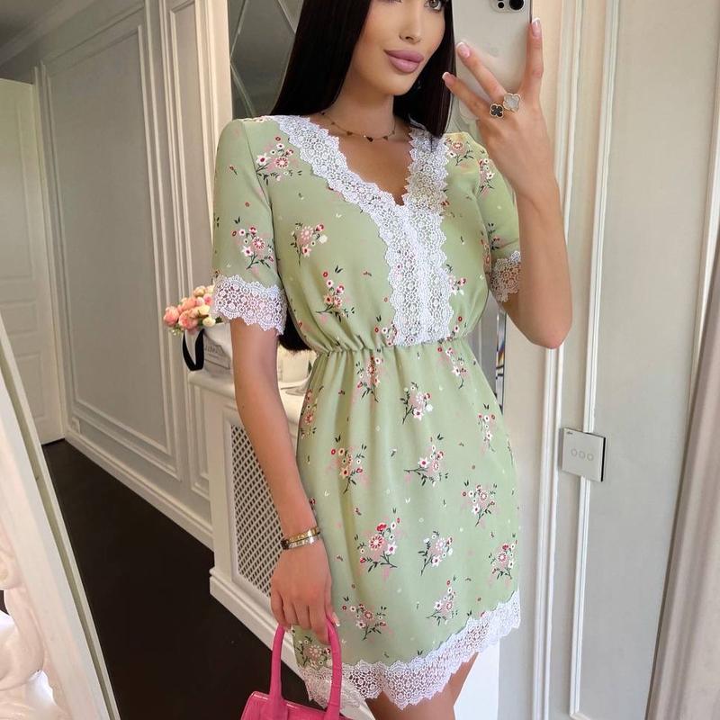 Сукня "Капри», талія на резиночці Матеріал - плательный стрейч (коттон 95%, спандекс 5%), бавовняне кружево Розмір єдиний с-м Кольори - молочний, блакитний, сірий, фісташка Ціна 845 грн #платье #голубой #белый #серый #фисташка