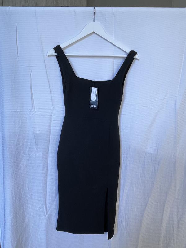 Елегантне чорне плаття, з квадратним вирізом і розрізом на одну ногу, дуже дорого виглядає. На розмір хс-с Ног 34 Довжина 100