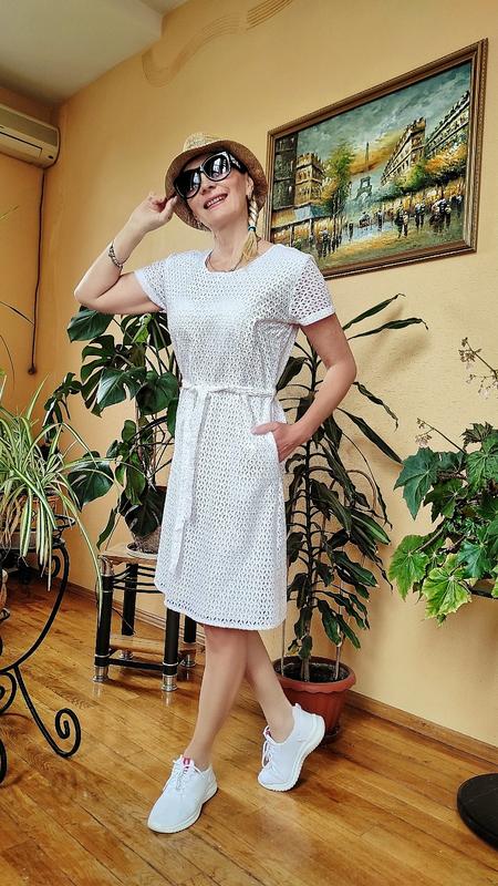 Лаконичное летнее платье, полуприлегающего силуэта под пояс. Карманы в боковых швах. Ткань хлопок прошва. Производство Индия.