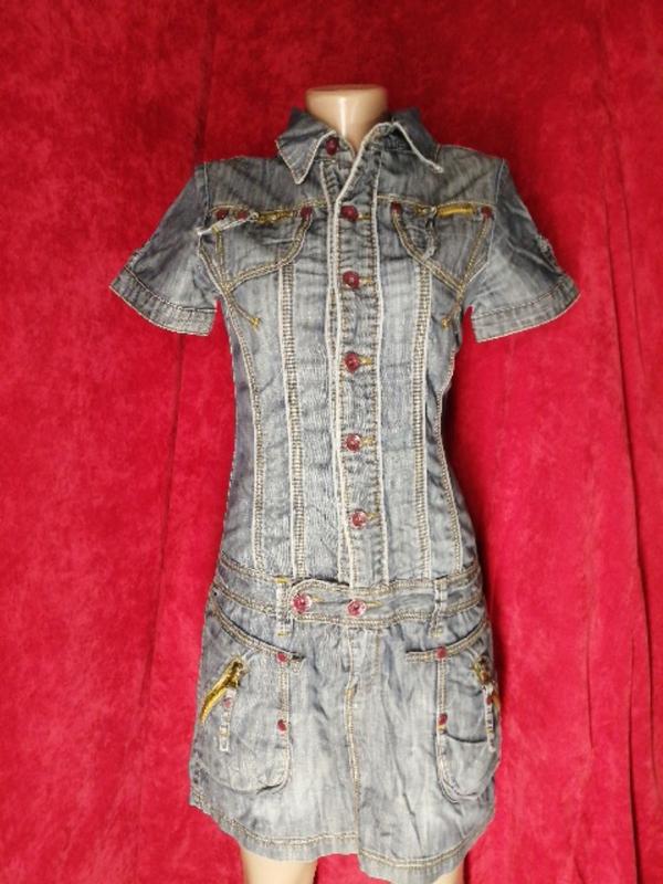 Супер классное джинсовое платье на пуговицах спереди. Есть карманы, сзади рисунок. Относительно плотный котон. Состояние идеальное. Замеры: длина изделия по спинке 82.5 см, плечи 37.5 см, полуобхват груди 43 см, полуобхват бёдер 47.5 см, низ изделия 49.5 см, длина рукава 18.5 см, внутренний шов 6 см. Продаю по причине: поправилась, лежит без дела