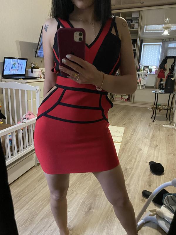 Красно-чёрное платье бандажное, с вырезами по бокам