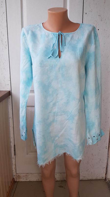 Фірмова Льняна блуза туніка,прінт-тай дай.Довжина-84см.Розмір L.