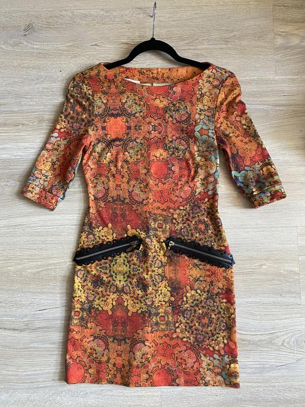 Облегающее платье в размере S. Рукав 3/4 Декоративные вставки Ткань плотная, немного тянется Размеры: Длина (от плеча) - 80 см Ширина плечи - 39 см Ширина по груди - 40 см Ширина талия - 35 см Ширина бёдра - 40 см Длина рукава по внешнему краю - 36 см