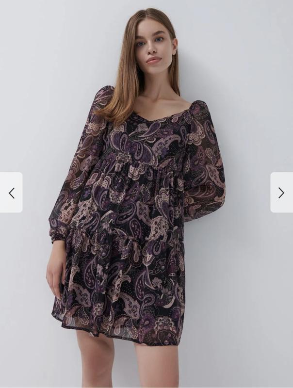 Сукня з довгими рукавами , гарним вирізом , з шифону . Дуже ніжно та жіночно виглядає . З підкладкою . Не просвічується. Абсолютно нове, ні разу не вдягалося.