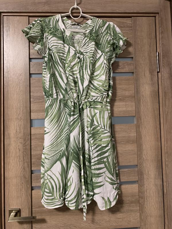 Натуральна сукенка в актуальний принт. Талія регулюється шнурочком .Розмір Хл.