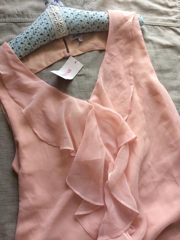Пудрова літня сукня сарафан з воланом JustFub Нова, з етикеткою. Сток Повітряний сарафан красивого пудрового пастельного персикового кольору. Тканина легка, тонка, підклад щільніший, все разом не просвічується. Крой вільний, красиві волани попереду, ззаду на спинці цікавий виріз та ґудзики. Збоку таємна блискавка. Розмір L.