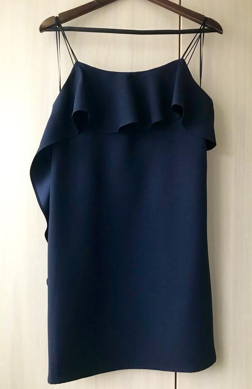 Бренд MANGO Эффектное коктейльное платье на тонких бретелях. Крой платья прямой.Ткань гладкая, шелковистая. По всей зоне декольте и правому боковому шву платье декорировано воланом. Размер в наличии XS, S Замеры размер XS: ПОГ 39-40, ПОТ 43, ПОБ 46-48, основная длина с бретелями 83-85, длина бретелей {1/2} 18,5, длина по боковому шву 60, ширина волана спереди на груди 14 Замеры размер S: ПОГ 43, ПОТ 45, ПОБ 48-50, основная длина с бретелями 83-85, длина бретелей {1/2} 18,5, длина по боковому шву 60, ширина волана спереди на груди 14 Состав: 100% polyester Доставка: Предоплата на карту Приват банка. Наложенный платеж НП с авансом. Отправка Новой почтой, Укр почтой, почтой Justin, Meest
