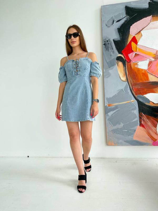 Джинсовое платье на шнуровке❣️ Мод:630 Размер: s,m,l Ткань: джинс коттон Длина 80см Цена 700 грн