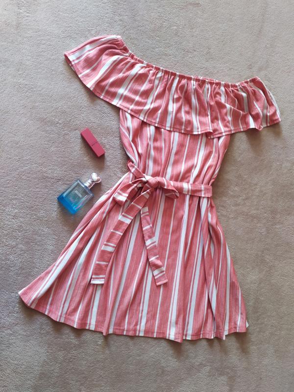 Красивое качественное стильное платье трапеция с поясом спущенные плечи