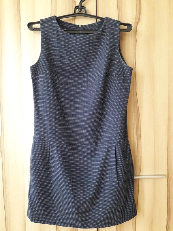 идеальное платье, размер С, темно-синие с мелкую точку, сзади на молнии, сбоку карманы. длина 83 см, ширина в груди 45 см, ширина в бедрах 45 см