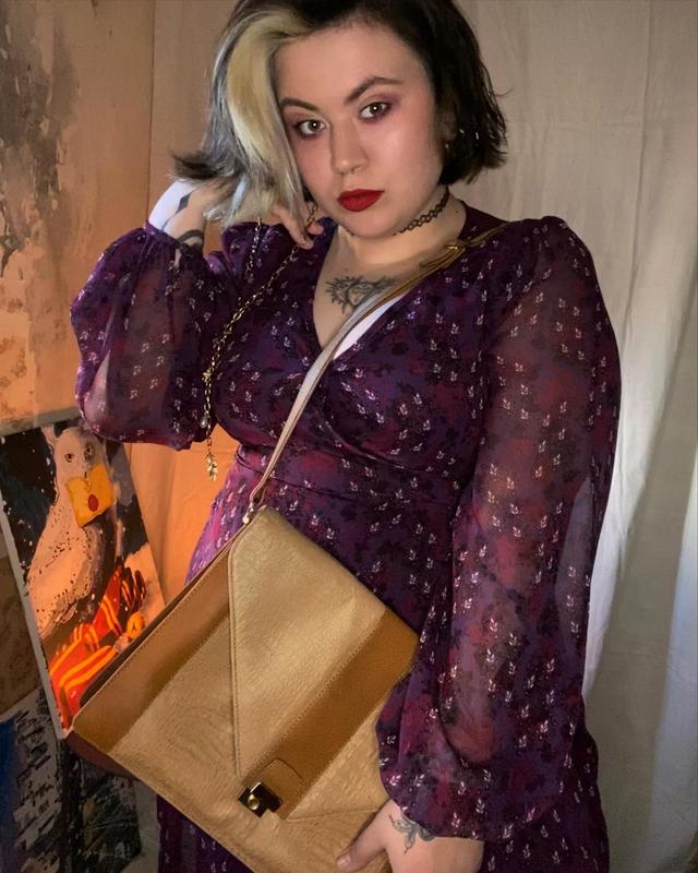 Шифонова сукня з підкладкою та легкими широкими рукавами. ❗️виріз зшитий, але можливо розпороти, тоді він буде більший; блискавка на сукні зашита, можливо розпороти (два останніх фото) - потребує заміни Розмір: 18, але скоріш на 16