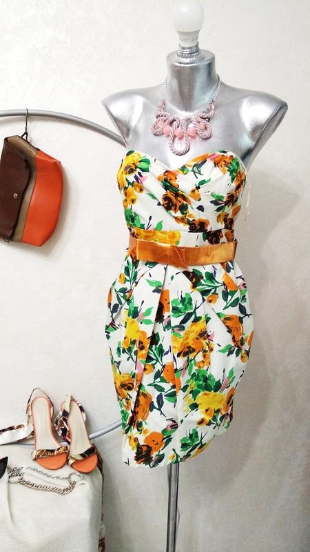 Классное яркое удобное платье с цветочным принтом.🌸🌸🌸🌸🌸 Карманы спрятаны под красивую драпировку. Лиф на подкладке,есть корсетные вставки. Размер указан uk 8, евро 34. Длина по боковому шву 62 см, ПОГ 41 см. ширина по поясу 34 см Состав: Полиестр 51%+ Коттон 49% Состояние новое, только при транспортировке пояс немного деформировался. ( Можно снять). Доставка:укрпочта, новая почта. Есть много качественной одежды и обуви для всей семьи 🛍️