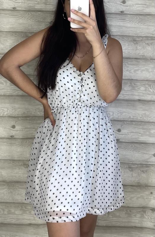 🌷біла сукня в горох 🌷розмір S 🌷є дефект 🌷відправка будь-якою службою доставки 1️⃣1️⃣5️⃣грн👍