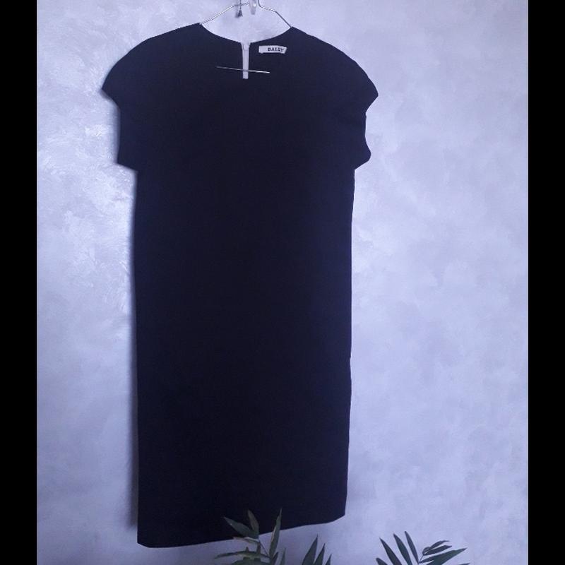 Плаття BALLY прямого фасону в коліно, декороване контрасною змійкою, можна під пояс ,присутні сліди носки( шовкова підкладка трохи полиняла) зовні стан дуже хороший. Розмір XS.