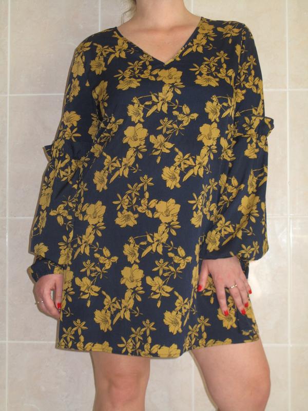 Лёгкое красивое платье Рукава на резиночках, в районе локтевого сгиба оборка Размер заявлен 12 (наш 46)
