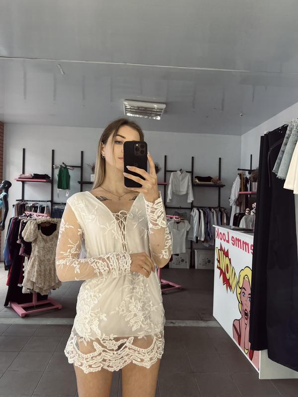 Сукня з білим ажурним гіпюром, пояс на резинці. Розмір універсальний S-M, на зріст до 150 см. Заміри: груди 90 см (регулюються), талія 68 см, стегна 94 см, довжина підкладки 64 см, довжина сукні 74 см, плечі 39,5 см, довжина рукава 58,5 см. Виробництво Китай. Доставка: укр пошта, нова пошта, meest express, самовивіз з Чернігова. Оплата: 100% оплата або накладний платіж. Накладний платіж тільки новою поштою з мінімальною передоплатою в 200 грн. Обмін та повернення відсутні! Тільки у випадку фабричного дефекту (перевіряйте при отриманні на поштою).