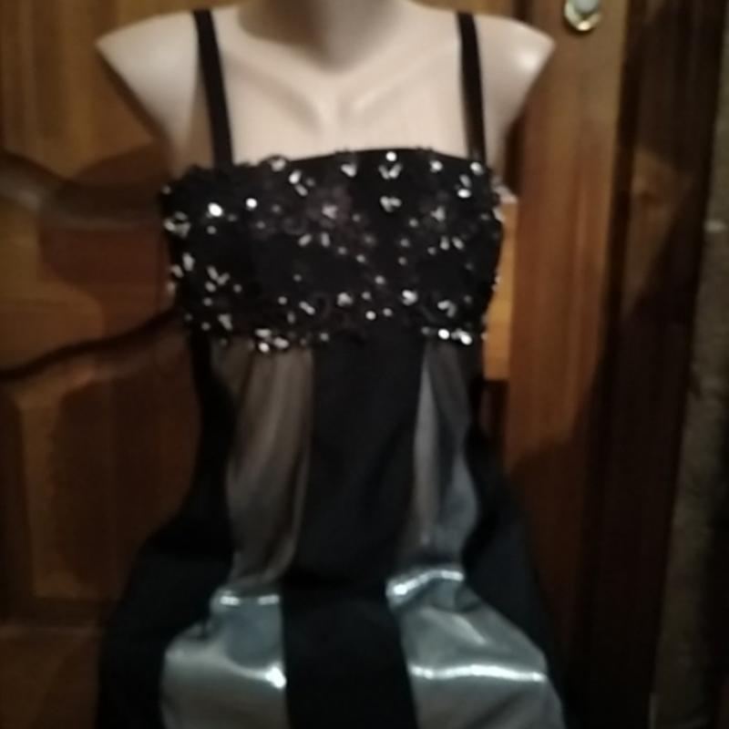платье почти новое....одето было один раз красивое поскольку лиф расшит бисером и паетками в тон ткани.идеальный вариант для выпуска или семейного торжества ткань на юбке мягкая и нежная к телу серебряного цвета под змеиную кожу....Застёжка на молнию сбоку замеры дам в смс... возврата нет перешлю любой почтой