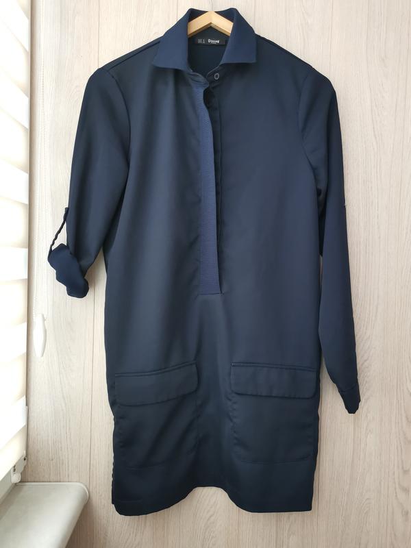 Стильне плаття свобідного пошиття, є дві кишені, внизу побоках невеликі розрізи.