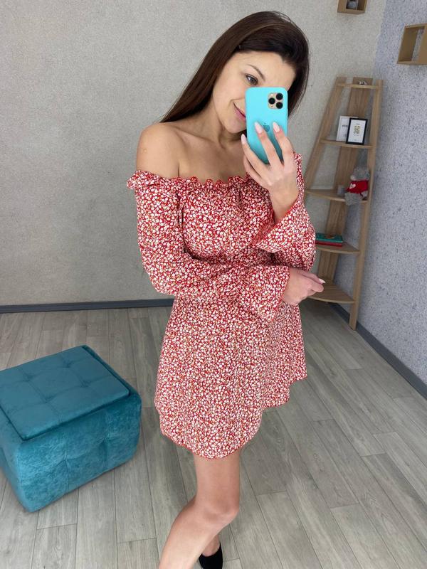 Платье нежное легкое со спущеными открытыми плечами цветочный принт