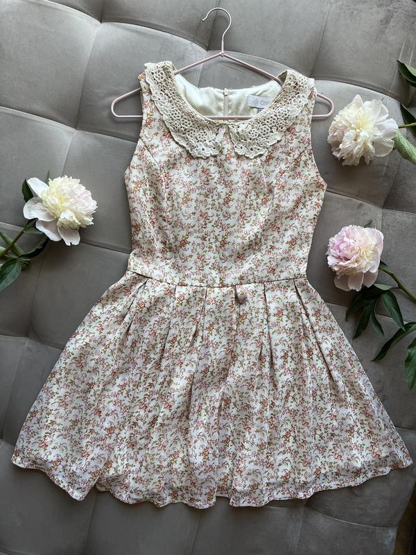 Милое шифоновое платье в цветочный принт с актуальным воротничком с подкладом на молнии