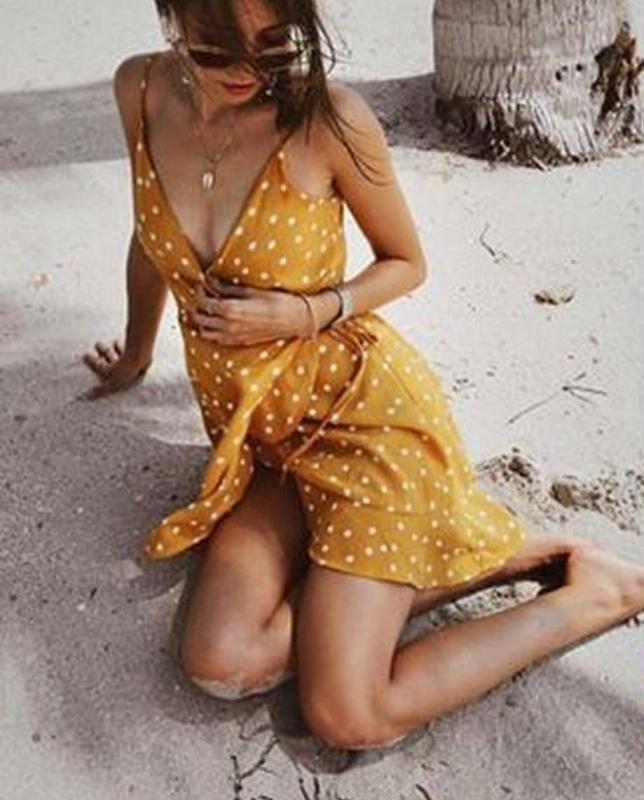 🌿яскрава сукня в горох від Bershka, крій на запах, брителі регулюються Розмір:S Заміри:ПО грудей 45 см, ПО бедер вільний, довжина 83 см Склад: віскоза
