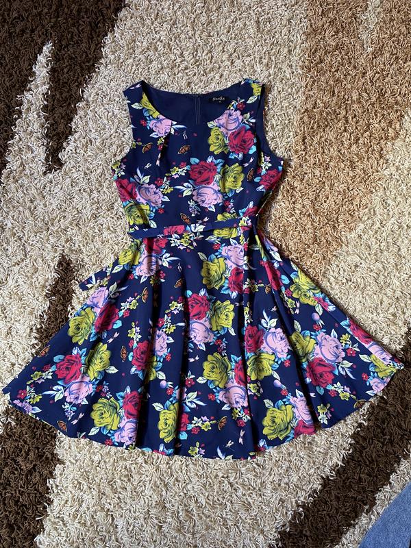 Синее платье в разноцветные цветочки. За деталями пишите в приват