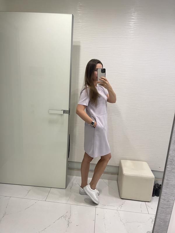 Трикотаж в виде тоненького замша. Край рукавов не обработан, как в изделиях из замши или кожи. Так же, как в подобных материалах, перед и спинка скроены из четырех частей. Выглядит как полезная вещь. Цвет нежно сиреневый. Как на первых двух фото. Замеры есть также на фото. Одетая на параметры: рост 163, ОГ 88, ОТ 72, ОБ 90
