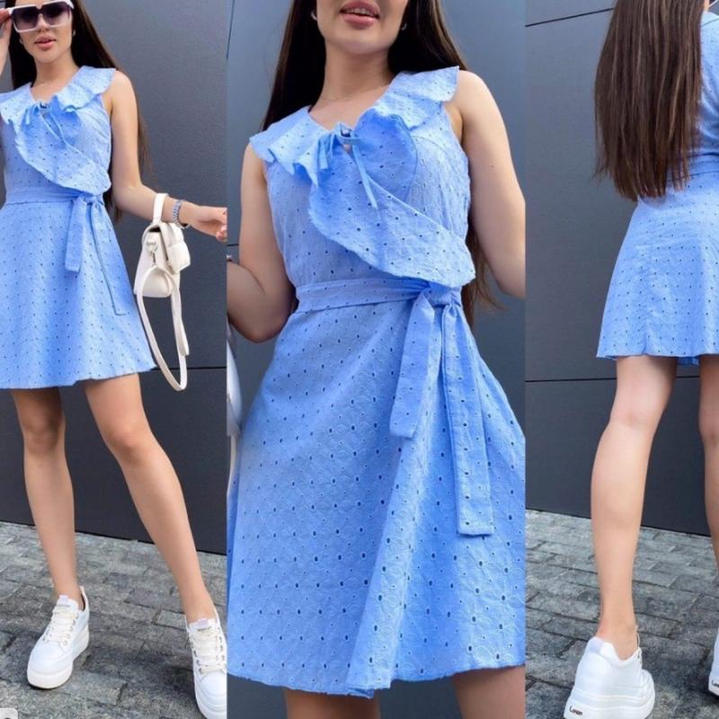 Сукня GQ-5127 Розміри: 42, 44, 46, 48 Тканина: прошва+батист(підклад) Кольори: чорний. фіолетовий. блакитний. Тканина та підклад плаття 100 натуралка, дуже приємні до тіла та абсолютно не парять Талія відрізна, пояс не пришитий, підклад тільки на юбці Заміри виробу: Довжина: 88,89,90,91 см Об'єднання об'єми грудей: 86,90,94,98 см