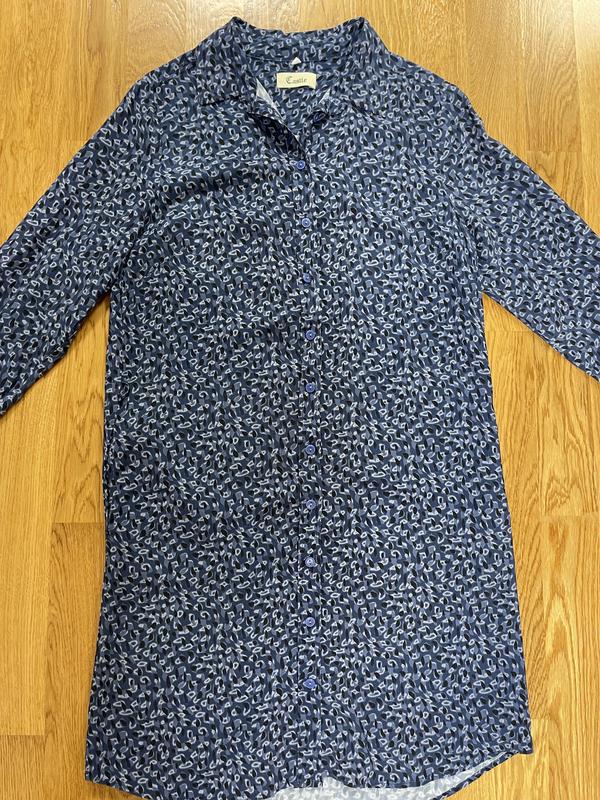 Материал очень лёгкий и приятный, хлопок. Рукав можно сделать 3/4, есть для этого пуговка и петелька. Подойдёт на S или неполную М, на рост 160 см. Замеры: Длина-89 см., Ширина бёдер-49 см., Ширина плечей-37 см., Ширина груди-47 см., Длина рукава-57 см. С удовольствием отвечу на все вопросы которые интересуют. Доставка только Новой почтой или самовывоз по договоренности в Киеве. Оплата на карту по предоплате или полная оплата.