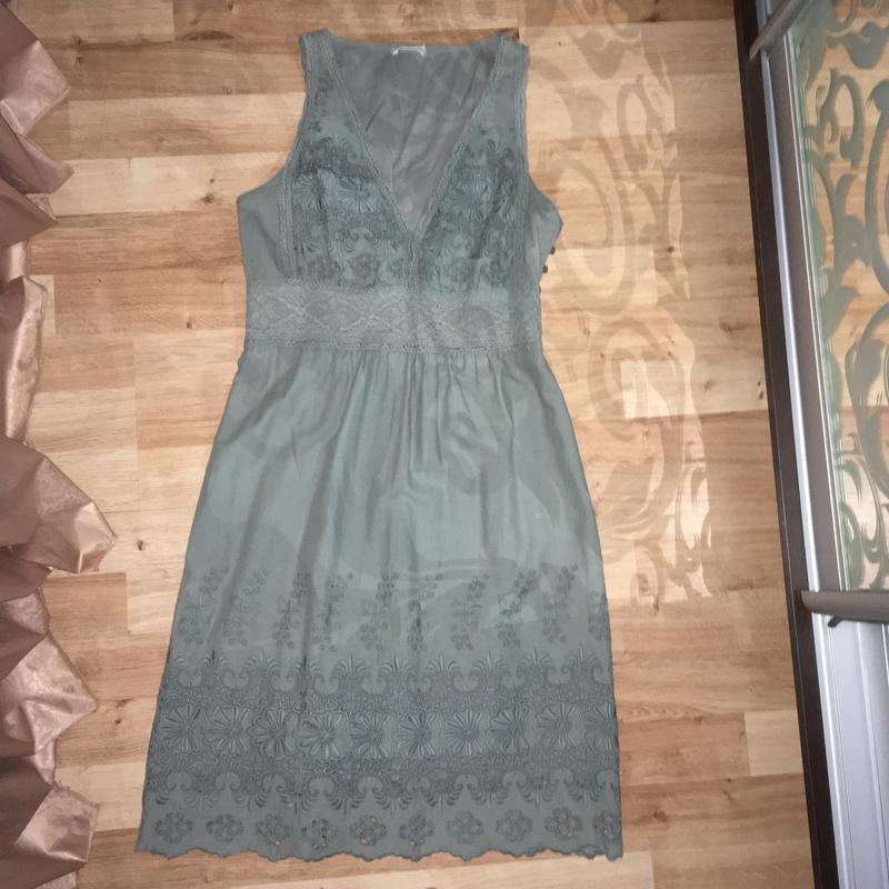 Літня сукня з прошви на s-невеличку m, в гарному стані, на підкладці, з одного боку маленькі ґудзики , з іншого боку блискавка, позаду на талії резинка.