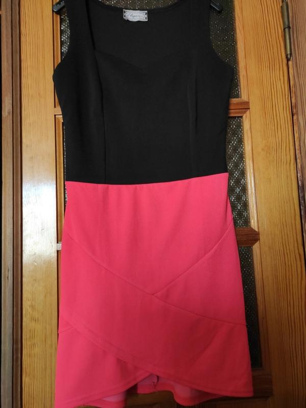 Плаття, тканина стрейч. Верх чорний низ, рожевий.. Бирки зрізані. Розмір М, наш 44-46. Довжина спереду 80, ззаду 85 см, ширина плечей 32, ПОГ 40-46 см, ПОТ 34-38 см, 40-44 див. Стан відмінний, без яких-небудь дефектів.