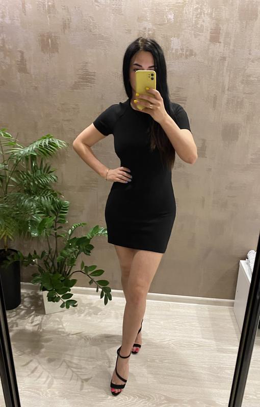 Класична чорна сукня. Спереду коротша, заді трішки довша. На потаємному замочку.