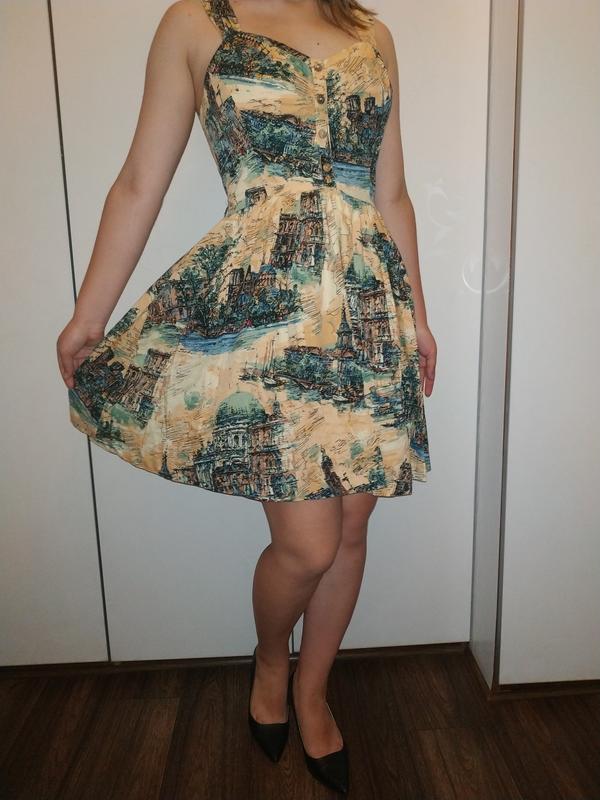 Сукня до колін, з принтом пейзажів Європи, розмір 10, зроблено в Китаї, хб