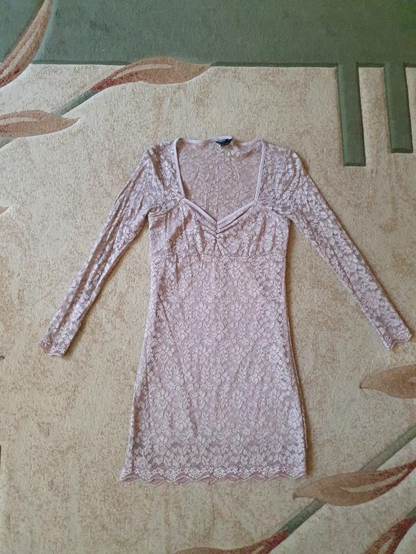Платье кружевное на подкладке стрейч цвет пудра подойдёт на М-Л замеры длинна 90 об 40(тянеться до 50)