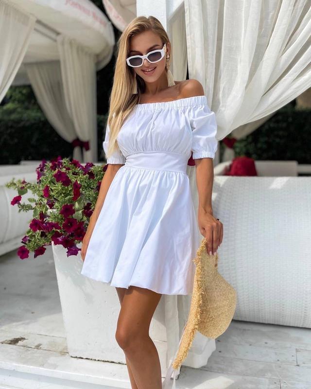 Платье “Флоя” 795 грн Размер с и м Ткань котон Сзади на потайной змейке Платье с двойной юбкой,на плечиках и на рукавах резинка Белое и малина