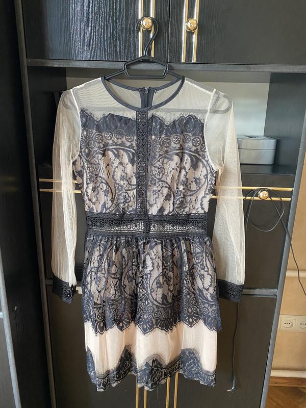 Сукня - бежева сітка і чорне круживо, розмір s-m