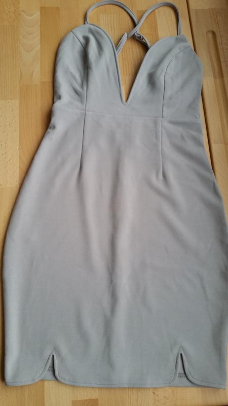Міні сіре плаття..... На брительках які регулюються. Довжина плаття 78 враховуючи брителі Обхват грудей 68. Обхват талії 60. Обхват бедер 80. Довжина вирізу 21. Дифетикетка відсутні . Відповім на усі додаткові запитання.