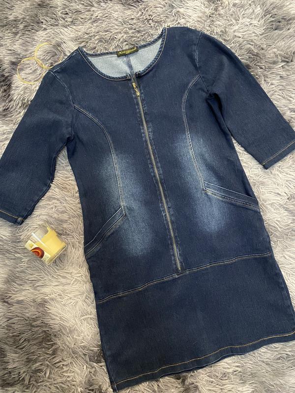 Плаття джинсове із замком спереду Рукав 3/4 Розмір на бірці-2хл(по факту на м-л) Довжина -87 Напівобхват грудей-45 Напівобхват талії -43 Напівобхват стегон-49 Дефектів немає Стан хороший