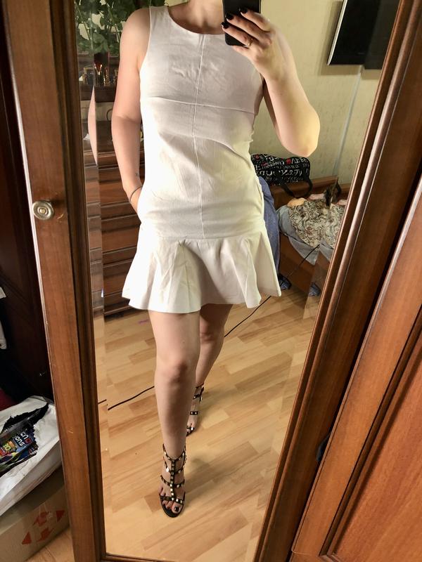Новое с биркой , размер л , длина 82, есть карманы, на спине завязывается , в груди 45 но примеряла на обхват 95 и было комфортно, за счёт завязок на спине