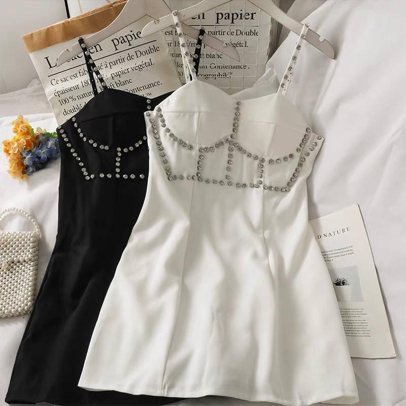 Сукня зі стразами🔝 Мод:618 Колір: білий, сіро-блакитний Тканина: костюмна Розмір: універсал 42-44 Є чашки Довжина 74см