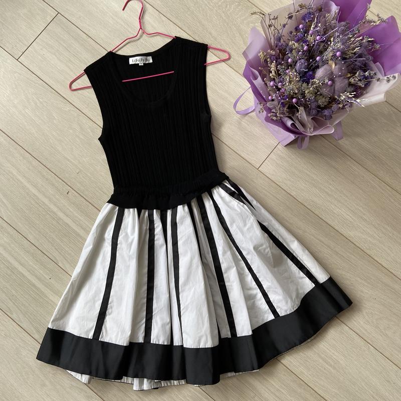 Чёрное платье с белой юбкой в идеальном состоянии Размер S-M Качественное платье из приятного материала, плотная юбка на подкладке Резинка на поясе туговата, замер резинки предоставила на последнем фото