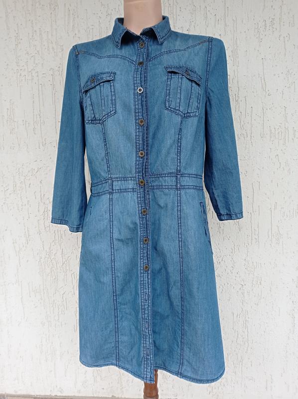 Котонова сукня з застібкою до низу в ідеальному стані, без нюансів. Заміри: довжина 89, ПОГ 46, рукав 45, регулюється, плечі 38, талія 42.