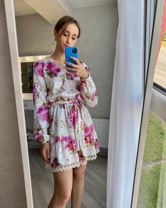 Ніжна дівоча сукня ✔️Спадаючий шовк ✔️Якісне мереживо ✔️Чудовий принт Розмір S